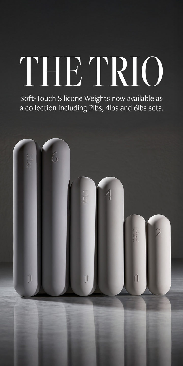 From morning pilates flow to an evening strength session, these sleek silicone and steel hand weights are precision-crafted to elevate every movement. With clean lines and tonal colourways, these aren't weights you'll hide away. They deserve a place in your most beautiful spaces—stacked on a shelf, displayed on your console, resting beside your mat. A subtle invitation to move, even on your busiest days.