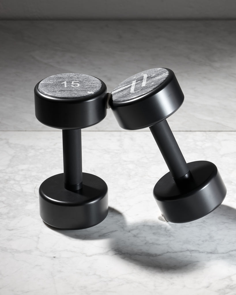 Our best selling free weights are made from precision machined from steel, perfectly powder coated and finished with marble ends. Rigorously tested to withstand endless reps and fit seamlessly into any space you like to lift. Two weights per set.
