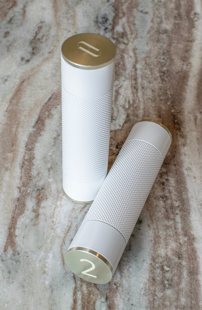 This kit contains sleek & sculptural 2lb hand weights made from recycled steel with corrosion resistant aluminum. Features an anti-slip knurled handle for optimal grip.