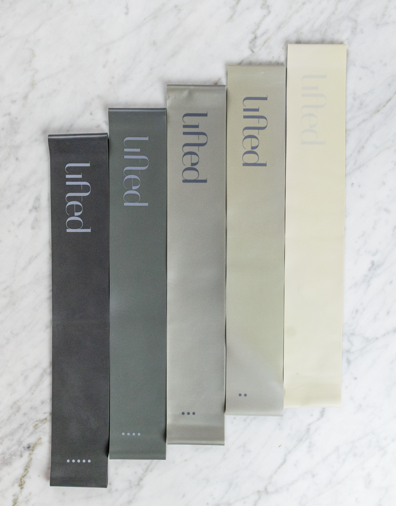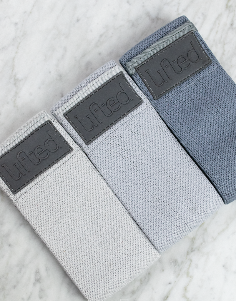 Kit includes 1 set of 2lb premium white hand weights, 3 fabric resistance bands and 5 rubber bands (varying difficulty). See below for access to a Lifted Lab Movement Routine that can be used to get you started with this kit.